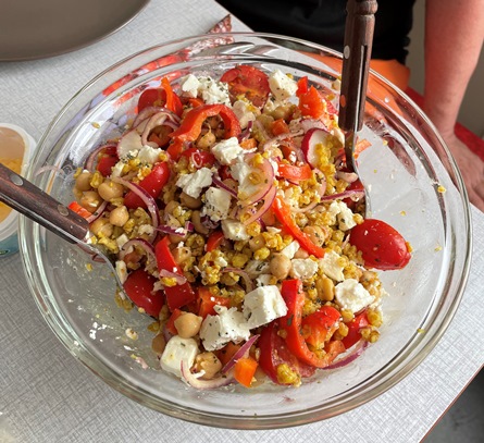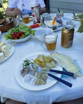 Frida och Olov tackar för flytthjälp med tacos. Olov har gjort egen salsa och allt är så gott. Islatte och kaka, mätt som en plätt.