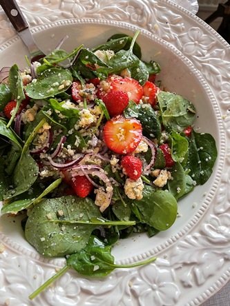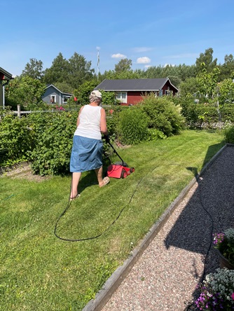 Det frodas på kollan, en del blommor, paprikan börjar bli lila och vi plockar hallon.