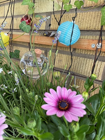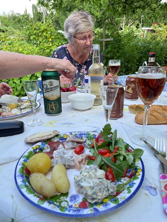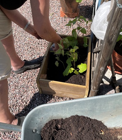 Det frodas på kollan, en del blommor, paprikan börjar bli lila och vi plockar hallon.