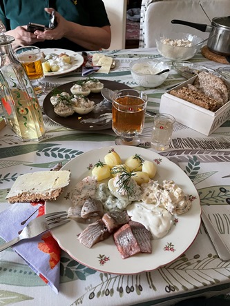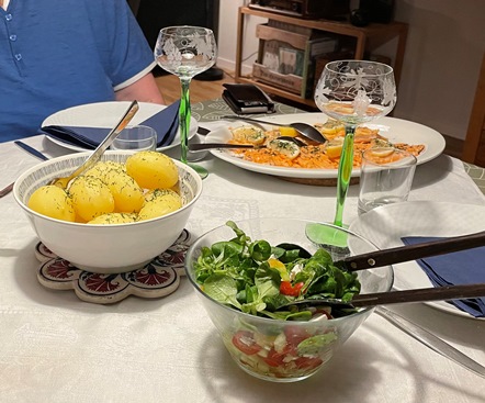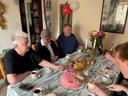Frida och Olov tackar för flytthjälp med tacos. Olov har gjort egen salsa och allt är så gott. Islatte och kaka, mätt som en plätt.