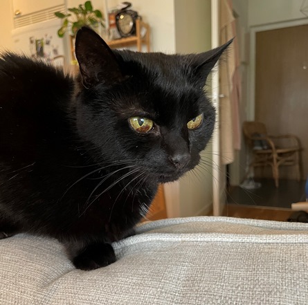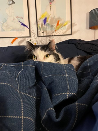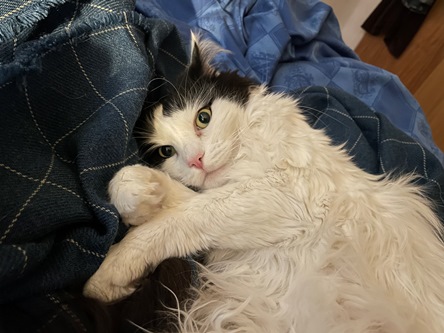 Purdy är en speciell liten misse. Pratar mycket och söker uppmärksamhet. Vill sova ovanpå en och helst bli klappad hela tiden, annars krafsar hon på munnen eller i ansiktet.