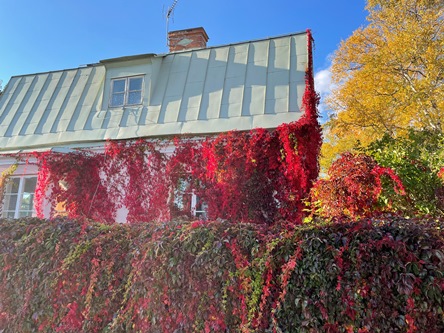 Det frodas på kollan, en del blommor, paprikan börjar bli lila och vi plockar hallon.