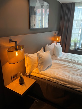 Hotellet var bokat sen länge för att slippa ta oss hem i folkmassorna.