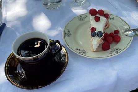Nationaldagen firar vi med mamma på slottet. Fikar med bakelse, grillar och grekisk yoghurt med honung och valnötter till dessert. Jag sover kvar.